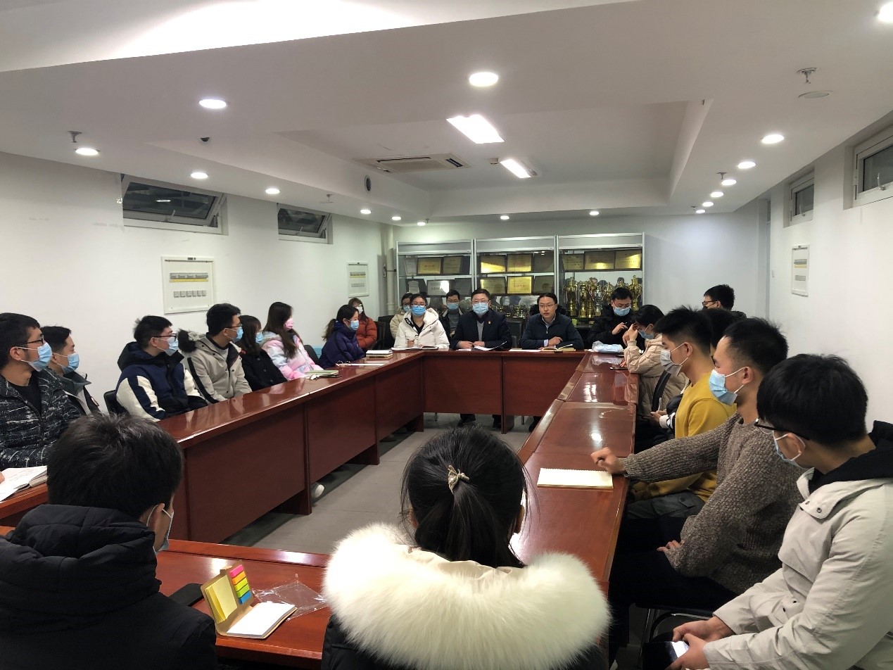 2021年1月15日下午,学院在逸夫楼309召开因家庭所在地为中高风险地区和作为项目骨干参与国家重点研发计划而暂缓离校的学生座谈会。学院党委书记赵亮、副书记姜骑山、学工办主任孙美洁和辅导员赵振凯参加会议。